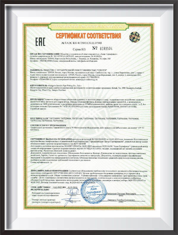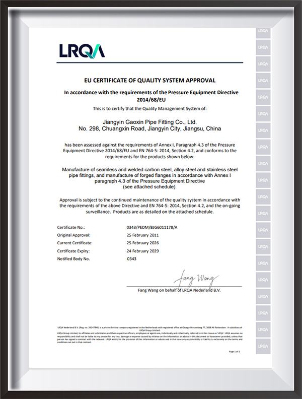 | Sertifikat | PED, AD2000, EAC, ABS, BV, DNV, NORSOK M650, ISO9001, ISO14001, ISO45001, dll. |